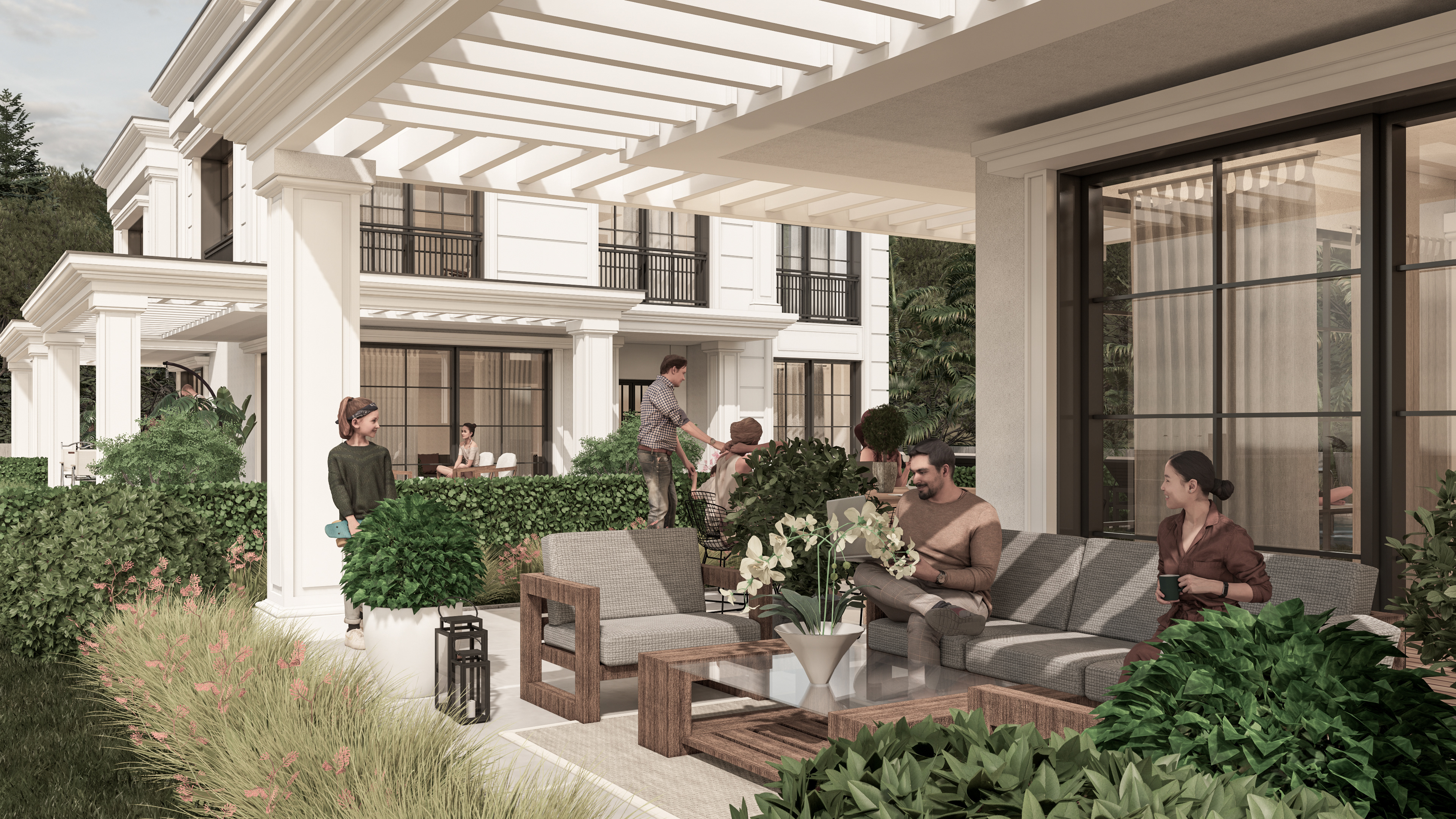 Blokların önünde geniş oturma ve sosyalleşme alanları yer almakta olup, bu alanlar peyzaj mimarisi ile özenle düzenlenmiş ve doğal ışıkla aydınlatılmıştır. Sosyalleşme alanlarının yanı sıra, site sakinlerinin keyifle vakit geçirebileceği havuz da bulunmaktadır. Bu villa sitesi, estetik, konfor ve güvenliği bir arada sunarak, sakinlerine seçkin bir yaşam deneyimi vaat etmektedir.